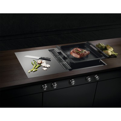 Индукционная варочная панель с вытяжкой Kuppersbusch KMI 9850.0 SRВарочная панель:-13-ступенчатая регулировка мощности «knobControl» cо стальными поворотными переключателями (в комплекте)-Цифровой дисплей для управления вытяжкой-3 специальные ступени: ступень плавления: ? 42 °С, ступень поддержания тепла: ? 70 °С, ступень для приготовления пасты: ? 94 °С-Распознавание наличия и размера посуды-Автоматика закипания-Индикация остаточного тепла-Память при отключении-Принудительное отключение (ограничение продолжительности работы)-Функция объединения ближней и дальней варочных зон в одну-Подключение к вытяжке с правой стороны-Класс энергоэффективности вытяжки: A-Размер рабочих зон: 210x190 ммВытяжка:-4-ступенчатая регулировка мощности вытяжки-Цифровой дисплей для управления вытяжкой-Производительность вытяжки: в стандартных режимах не более 530, в интенсивном режиме – 620 м3/чМощность:-Дальняя левая и ближняя правая: 2,1 / 3,0* кВт-Ближняя левая и дальняя правая: 1,6 / 1,85* кВтПотребляемая мощность:-Панель: 7,4 кВт-Вытяжка: 0,115 кВтУровень шума вытяжки:-Минимальный: 45 дБ-Максимальный: 55 дБ-Интенсивный режим: 68 дБ-Глубина столешницы: 55 ммПреимущества индукционной варочной панели:-Энергоэффективный способ приготовления пищи за счет прямой передачи энергии посуде (требуется соответствующая посуда, изготовленная из магнитных материалов)-Повышенная безопасность, так как передача энергии происходит только при нахождении посуды на варочной панели-Высокая эффективность теплопередачи между индукционной варочной зоной и дном посуды-Высокая скорость нагрева-Низкая опасность ожогов, так как варочная зона нагревается только от контакта с дном посуды; выкипевшая жидкость не прилипает к поверхности-Быстрое и точное регулирование мощностиИндукцияМногие профессиональные повара являются убежденными сторонниками этой энергии. Индукцию можно применять так, как никакой другой вид энергии - быстро, экономно и безопасно. Секрет индукции: энергия подается туда, где стоит посуда с электромагнитным дном. Тепло вырабатывается непосредственно внутри дна самой посуды, что способствует максимально быстрому нагреву при минимальном расходе электроэнергии. Кроме того, сама варочная панель не нагревается, а значит, к ней ничего не пригоритРаспознавание и наличие посудыВнутри всех индукционных варочных зон в дополнение к системе распознавания посуды находится датчик распознавания размера посуды. Он определяет диаметр посуды и, при необходимости, включает дополнительный нагревательный элементСплошная индукционная поверхностьСплошная индукционная поверхность позволяет адаптировать размер варочной зоны для индивидуальных потребностей. Варочные зоны обычного размера используются для небольшой посуды. Для посуды большего размера и утятниц каждая ближняя варочная зона может быть объединена с дальней, а также все 4 варочные зоны могут быть объединены в единое пространствоУсиленный нагревИндукционные варочные панели Kuppersbusch способны увеличивать мощность отдельных варочных зон при помощи подключения режима Power. Это позволяет при необходимости значительно ускорить процесс нагреванияХарактеристики:-Потребляемая мощность: варочная панель - 7,4 кВт / вытяжка - 0,115 кВт-Размеры прибора (Ш х Г): 898 х 518 мм -Размеры ниши (Ш х Г): 860 х 500 мм