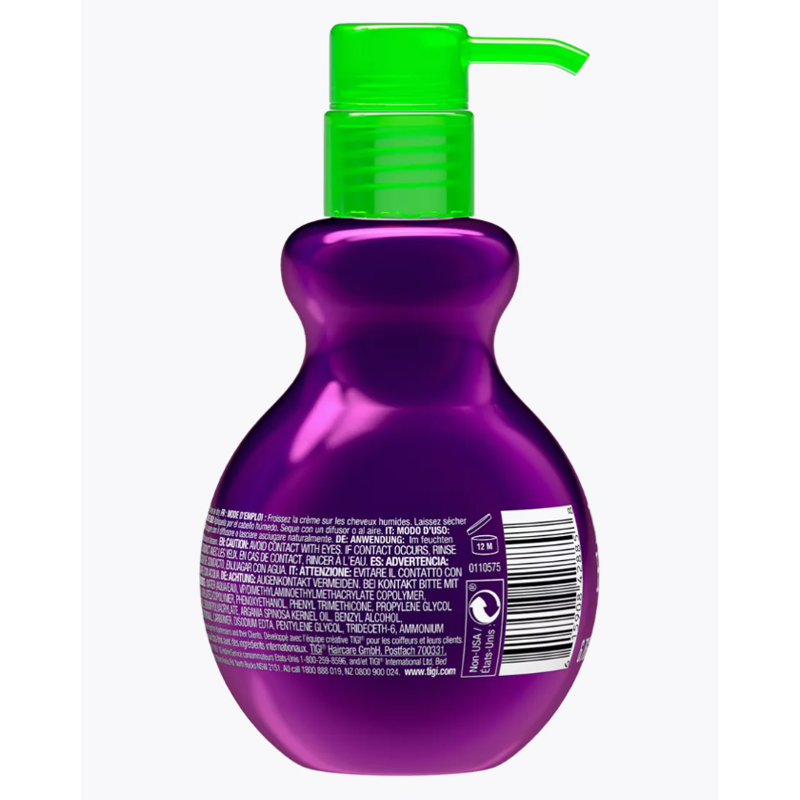 TIGI BED HEAD FOXY CURLS ДЕФИНИРУЮЩИЙ КРЕМ ДЛЯ ВЬЮЩИХСЯ ВОЛОС И ЗАЩИТЫ ОТ ВЛАГИ. Профессиональный крем Foxy Curls придает форму вьющимся волосам, предотвращает эффект пушистых волос, дефинирует и защищает от влажности на 72 часа, делая кудри гладкими. Обладает легкой фиксацией, не утяжеляет и не склеивает волосы. Незаменимое средство для всех типов вьющихся волос и создания локонов. Формула крема содержит аргановое масло и масло Бабассу с высоким содержанием антиоксидантов и витамина Е, делает локоны мягкими и послушными, кондиционирует, питает и увлажняет волосы, придает дополнительный блеск, защищает волосы от негативного термического воздействия. Комплекс Curl Contouring помогает определить и придать форму волнам и кудрям, смесь Anti-Frizz для борьбы с влажностью и пушистостью для гладких волн и локонов, стайлинговые полимеры для легкой фиксации, благодаря которой волны и кудри сохраняют свою форму и четкий контур. Крем Foxy Curls имеет фруктовый аромат, который сохраняется на волосах. Способ применения: Нанесите одну-две дозы крема на влажные, подсушенные полотенцем волосы, скручивая их в жгуты. Высушите при помощи диффузора или естественным путем.